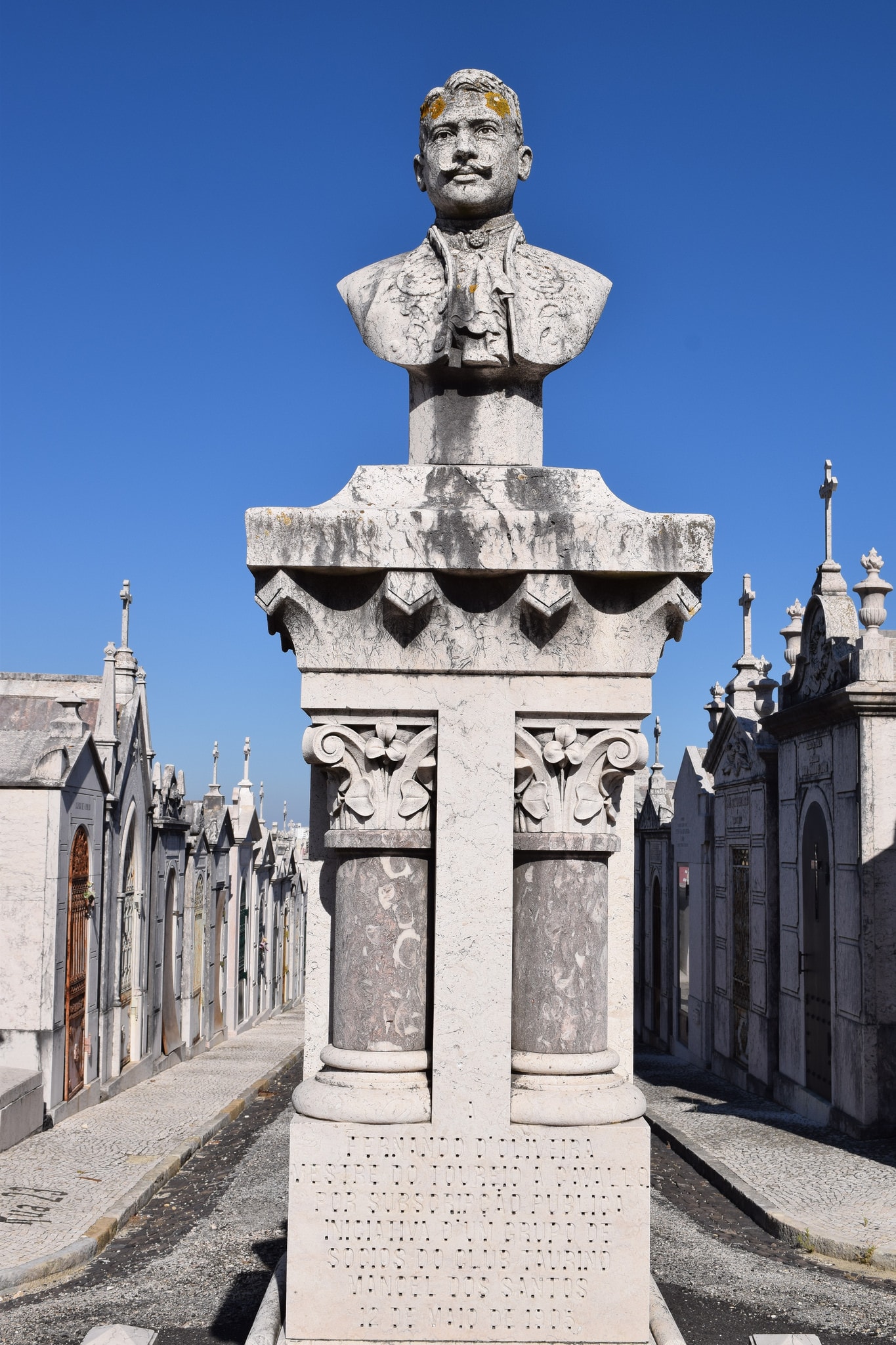 Don’t miss the three graves of Portuguese toureiros who were killed in bullfighting accidents. Daniel Do Nascimento, Fernando De Olivera, and Tomas Da Rocha all met their grisly end in this manner, and can be found buried under elaborate busts depicting them in their 18th-Century costumes.